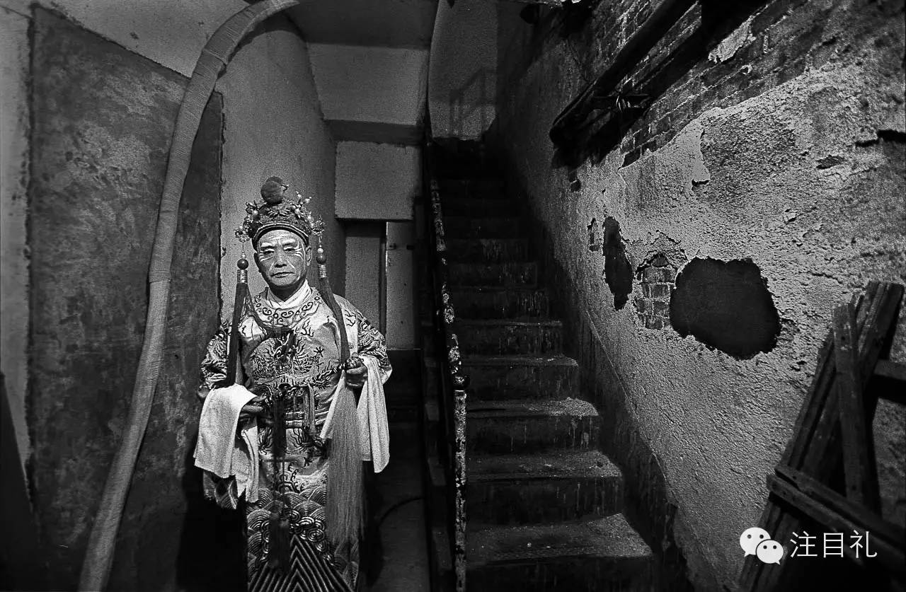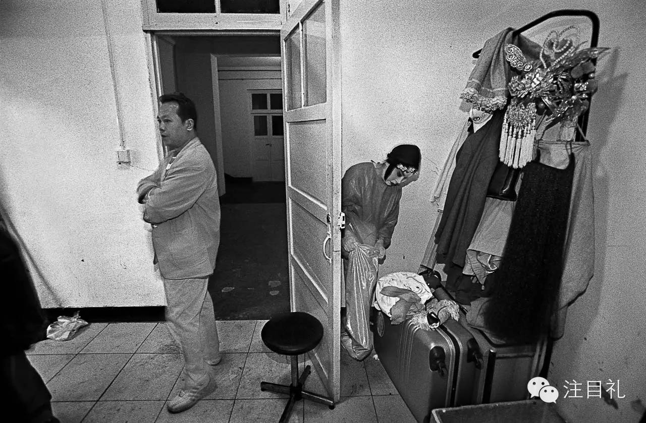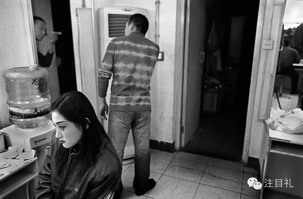 57岁的田家里在《秦香莲》中饰太监,他在后台等候上场。由于缺乏必要的经费,剧院设施已经多年没有进行维修。2004年4月 济南北洋剧院。