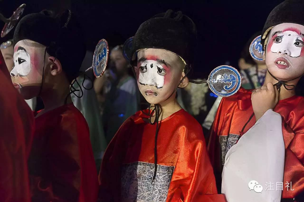 三位小学生业余京剧演员准备登台演出,这是他们第一次正式登台演出。为了在小学生中普及京剧知识,济南市纬十路小学把京剧基础表演课程作为学生的课外学习内容。2015年7月21日,山东剧院。