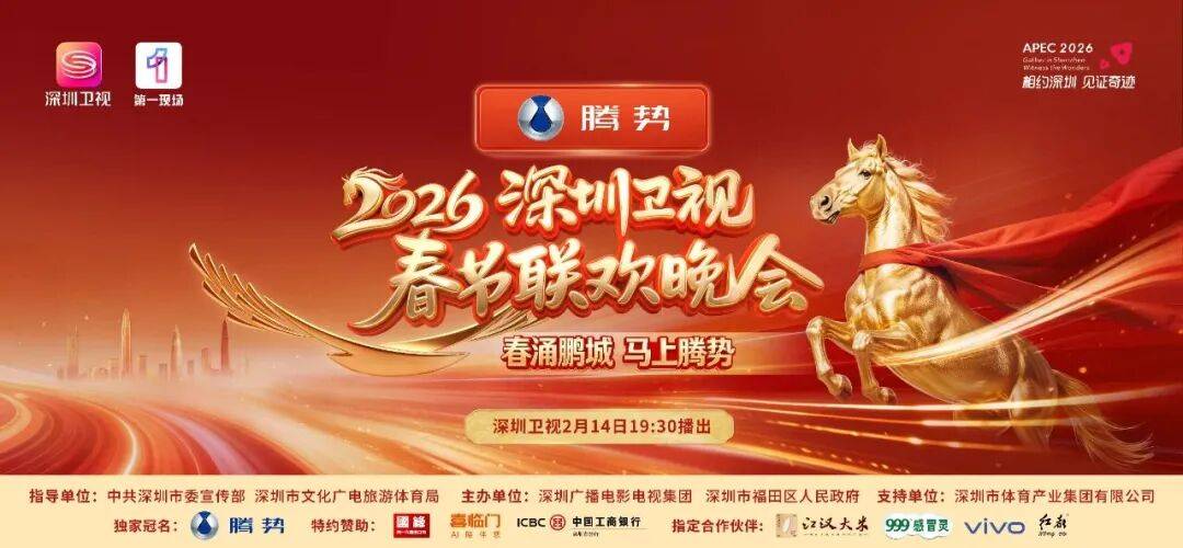 2月14日19:30,锁定“春涌鹏城 马上腾势”腾势汽车,2026深圳卫视春节联欢晚会,一起来看这场穿越百年的青春对话,感受这座青春之城最鲜活的心跳!