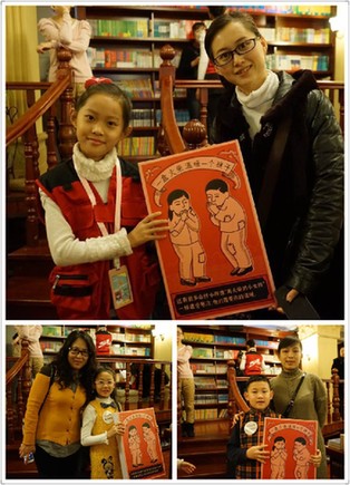 1月31日上午九点,在果戈里书店出现了一可爱的小女孩,她们身穿古典长裙,头裹赭红色围巾,挎着装满火柴的小竹篮,微笑着向果戈里书店的读者们赠送火柴,妈妈们也纷纷和孩子举起火柴合影留念。