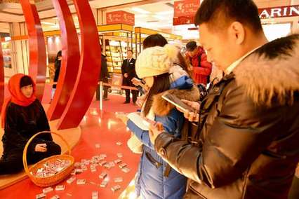 在道里松雷商场,路人收到“卖火柴的小女孩”递过来的火柴,这盒火柴的正面印有“还有很多山村小孩像‘卖火柴的小女孩’一样遭受寒冷,他们需要你的温暖”,背面则有一个二维码,并写着“扫码捐款送温暖。很多人拿起手机,现场扫码捐款,为山区的孩子们送去温暖。