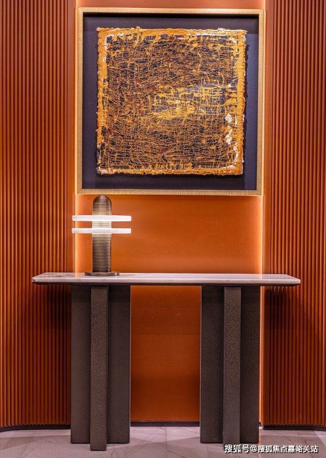 比如书厅空间,选用了当代大漆艺术家段一凡以石库门老建筑红砖墙元素为灵感的作品《Stroke--Goldabovered》,让空间集萃了露香园传奇元素与海派底蕴。
