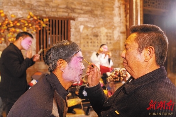 “见过万岁下一膝,昨日为臣寿诞禧……”《郭子仪庆寿》的唱词,裹着浓得化不开的湘音,破开冬夜的清寒。