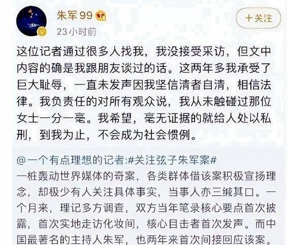 同时认定其公开发表的不实言论构成对朱军名誉权的侵害,责令删除相关内容、置顶道歉10天,并赔偿65.5万元